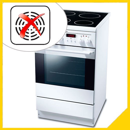 ● использование неправильной посуды: с неровным дном или с площадью дна, меньшей чем «блин» конфорки;
